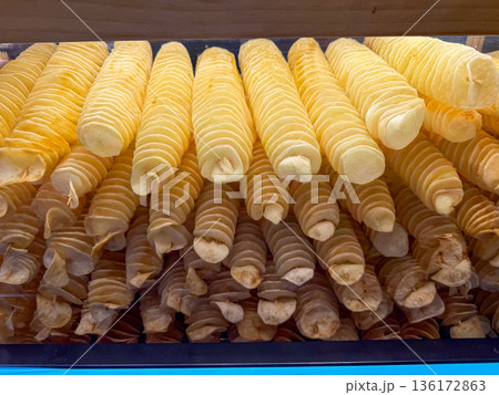 Spiral potato chips street food display