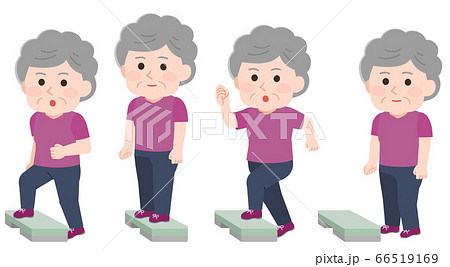 室内運動 踏み台昇降をする高齢女性 イラスト