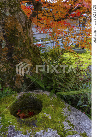 くろ谷 金戒光明寺 紅葉に包まれた花峯庵 つくばい