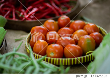 Explore a colorful array of fresh organic vegetables available in a vibrant, bustling marketplace