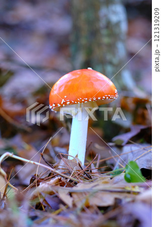 Amanita Muscaria or fly agaric Mushroom in an oak Forest.