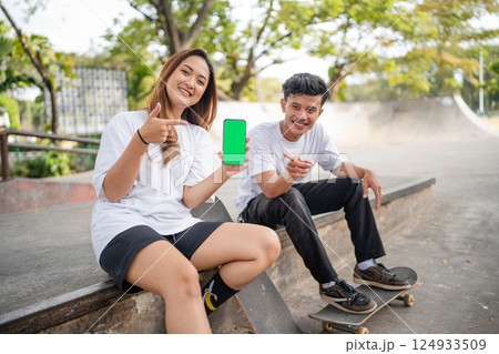 Young skateboarders are having fun on a sunny day at their local skate park