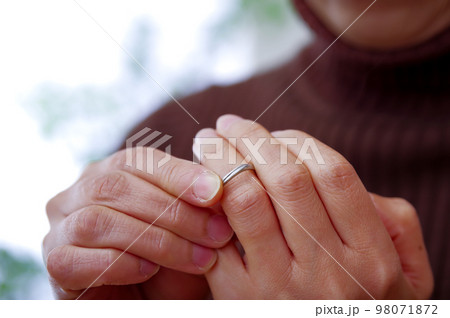 指輪を外す女性