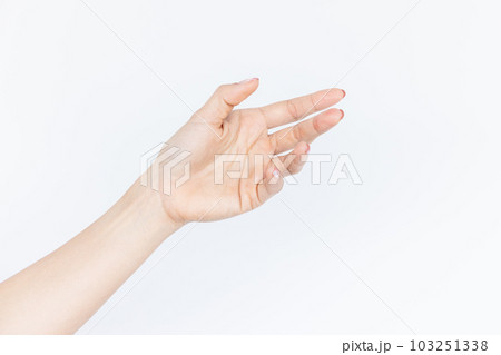 Beautiful asian woman hand isolated on white background, Empty open woman hand on white background, Female hand on white background.