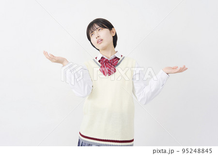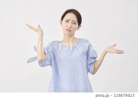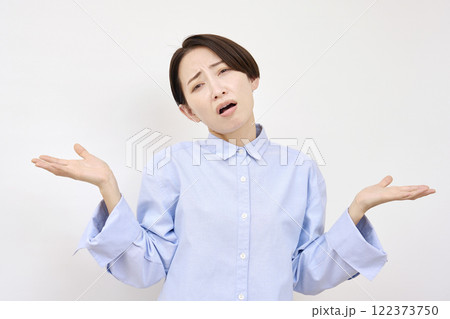 女性 ミドルエイジ ギブアップのジェスチャー 白背景 カメラ目線