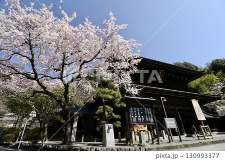 身延山久遠寺三門と春の青空に映える満開の桜