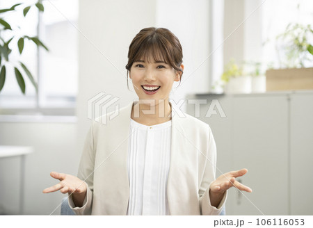 カメラ目線で話す笑顔の若いビジネスウーマン
