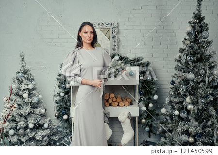 Elegant Woman in Holiday Setting.