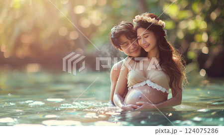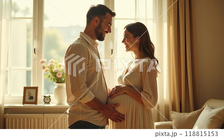 Family Bliss, Smiling Pregnant Father and mother Exemplifying the Beauty of Human Relationships