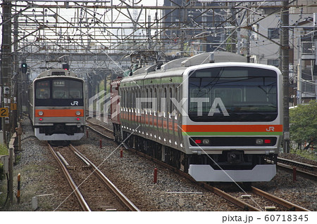 元総武線E231系車両同士の並び(八高線×武蔵野線)