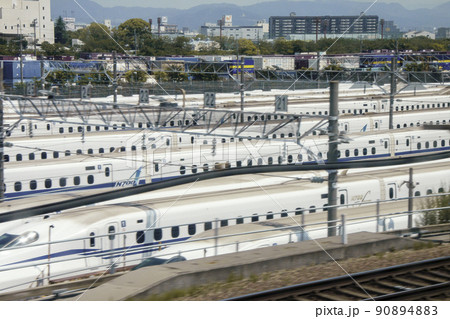 新幹線の車窓から見た新幹線基地(大阪・鳥飼車両基地)