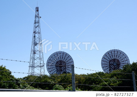 Advanced technology devices in army governmental establishment used for surveillance monitoring. Empty military base of operations with radar systems protecting borders from surprise attacks