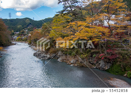 青梅線沿い 軍畑大橋から望む多摩川と紅葉 東京都青梅市