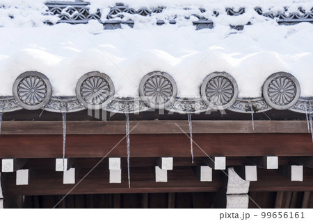 天台宗 青蓮院門跡 屋根瓦に積もった雪