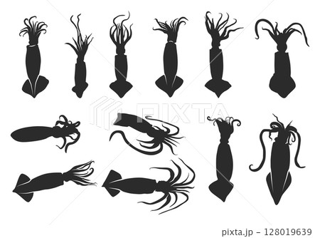 Squid silhouette, Squid svg, Squid clipart, Squid octopus silhouette, Squid vector illustration, Squid icon bundle.
