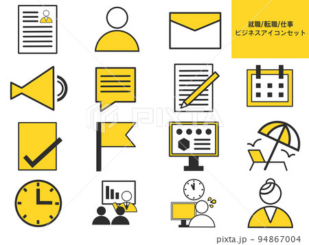 就活/転職/仕事/シンプルビジネスアイコンセット/黄色イエロー
