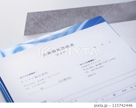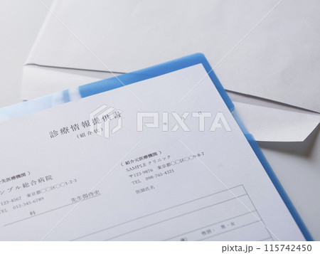 医療機関が発行する診療情報提供書とその封筒のイラスト