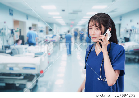 忙しく急患の対応をする若い女性ドクター