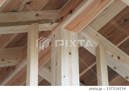 木造住宅建築現場の梁と柱