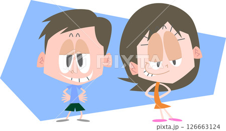 ニヤニヤと薄笑いを浮かべる男女主線なし