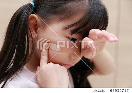 絆創膏 (カットバン バンドエイド 人物 子供 コピースペース 怪我 事故 痛い 辛い 女児 ケガ)