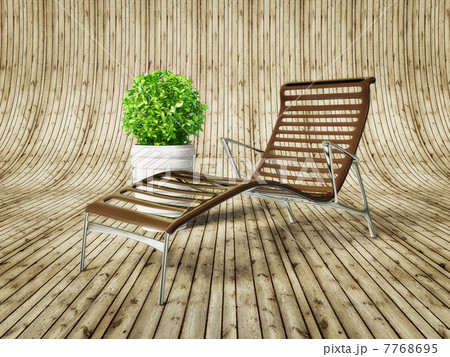Landscape of wooden chaise lounge