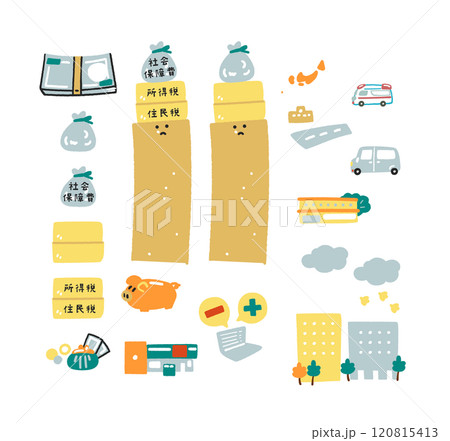 年収の壁にまつわるアイコン集 セットのストックイラスト素材