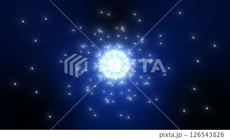 暗闇で爆砕する青い光の粒子(動画もあります)