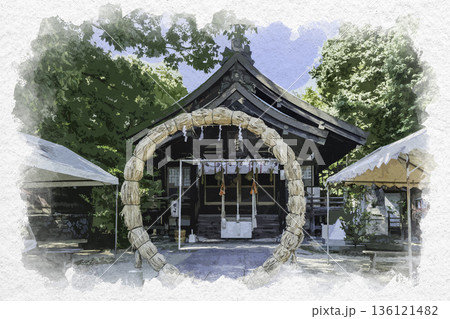 水彩画風 三原八幡宮 拝殿 広島県三原市