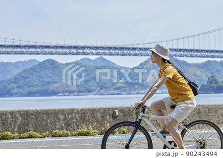 しまなみ海道にてサイクリングを楽しむ地本人女性