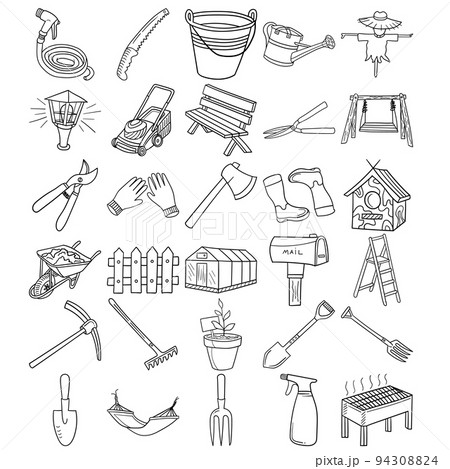 Garden Hand Drawn Doodle Line Art Outline Set