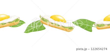 Watercolor Illustration Seamless Pattern Border with Sandwich, Fried Egg and Spinach Leaves for Printing, Textile and Web Use