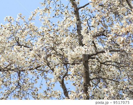 春の素材・青空に純白の辛夷の花たくさん・横位置青空バック