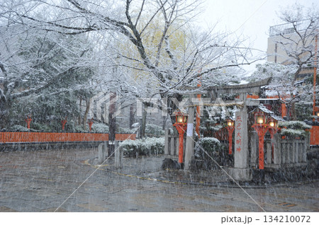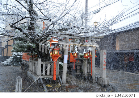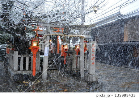 京都 祇園 雪の辰巳大明神