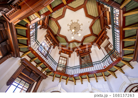 岩手銀行赤レンガ館 岩手銀行旧本店本館 内観 吹き抜けと華麗な装飾 廻廊 アーチ型の欄間