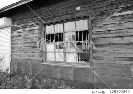 廃屋の割れた窓ガラス
