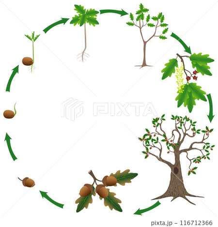 Life cycle of tree. Stylized plant, germination, growth proses, flowering and fruiting, horticultural crop, agriculture and gardening, stages from seedling to harvest vector cartoon flat concept