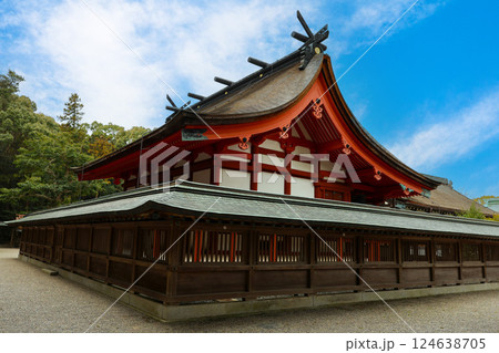 【福岡県】晴天下の宗像大社辺津宮 本殿 宗像大社 辺津宮 宗像大社辺津宮 本殿 拝殿 本社 世界文化