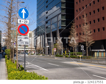 駐車禁止の標識と補助標識「タクシーの客待ちを除く」