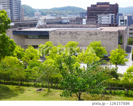 福山城から見える広島県立歴史博物館(広島県福山市)