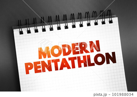 Modern pentathlon - Olympic sport that comprises five different events, text concept on notepad