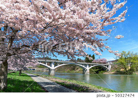【山形大江町】満開の桜と三連アーチが美しい旧最上橋