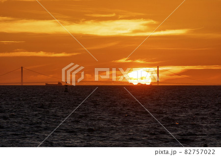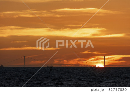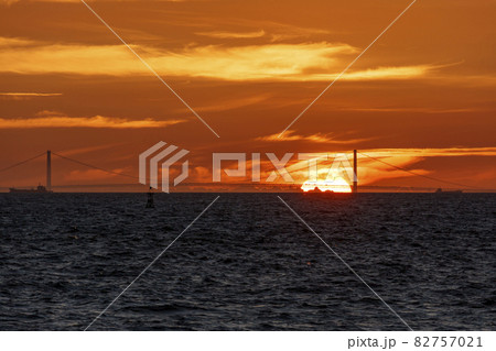 日本有数の夕日の名所夕日岬 山頂付近に沈む美しい夕日A