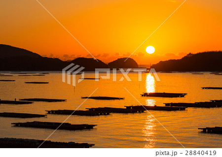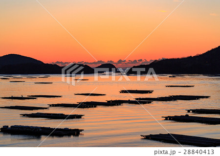 瀬戸内海の牡蠣養殖場の夜明け