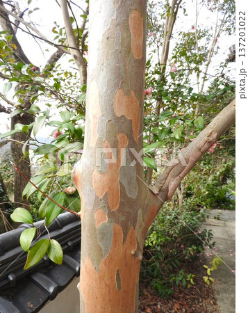 幹がまだら模様になる「リョウブ」の幹の樹皮