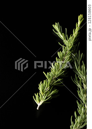 ローズマリーの葉のみを黒背景で撮影