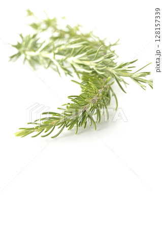 ローズマリーの葉を白背景で撮影