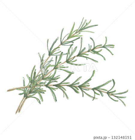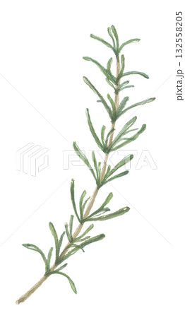 Rosemary sprig isolated on white background. Aromatic evergreen shrub