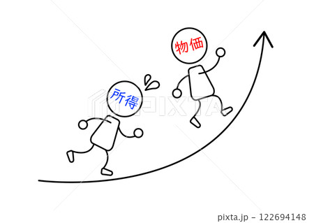 所得が物価上昇に追いつかない状況を表したイメージイラスト