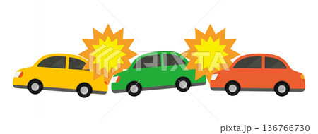 ベクターアイコン素材:車の追突事故、玉突き事故